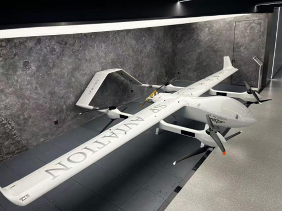 在易家驰董事长的陪同下,调研一行首先走进索孚航空低空展馆,近距离观摩了公司的两款核心产品 ——SFW150V 大型无人机和 SF20V 载人垂直升降飞机。
